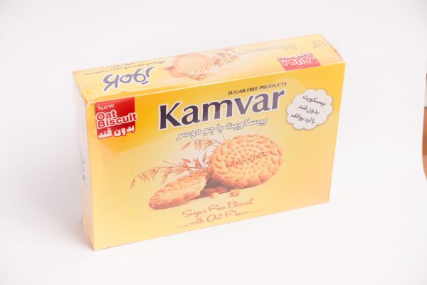 بیسکوییت یولاف بدون قند کامور: حاوی جو دوسر و فیبر بالا. مناسب افراد دیابتی، به کاهش کلسترول کمک کرده و کاملاً بدون شکر است.
