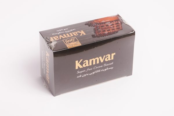 بیسکوئیت بدون قند کامور با طعم کاکائو: مناسب افراد دیابتی و رژیمی. بدون شکر و شیرین شده با ایزومالت، با طعم غنی کاکائو.