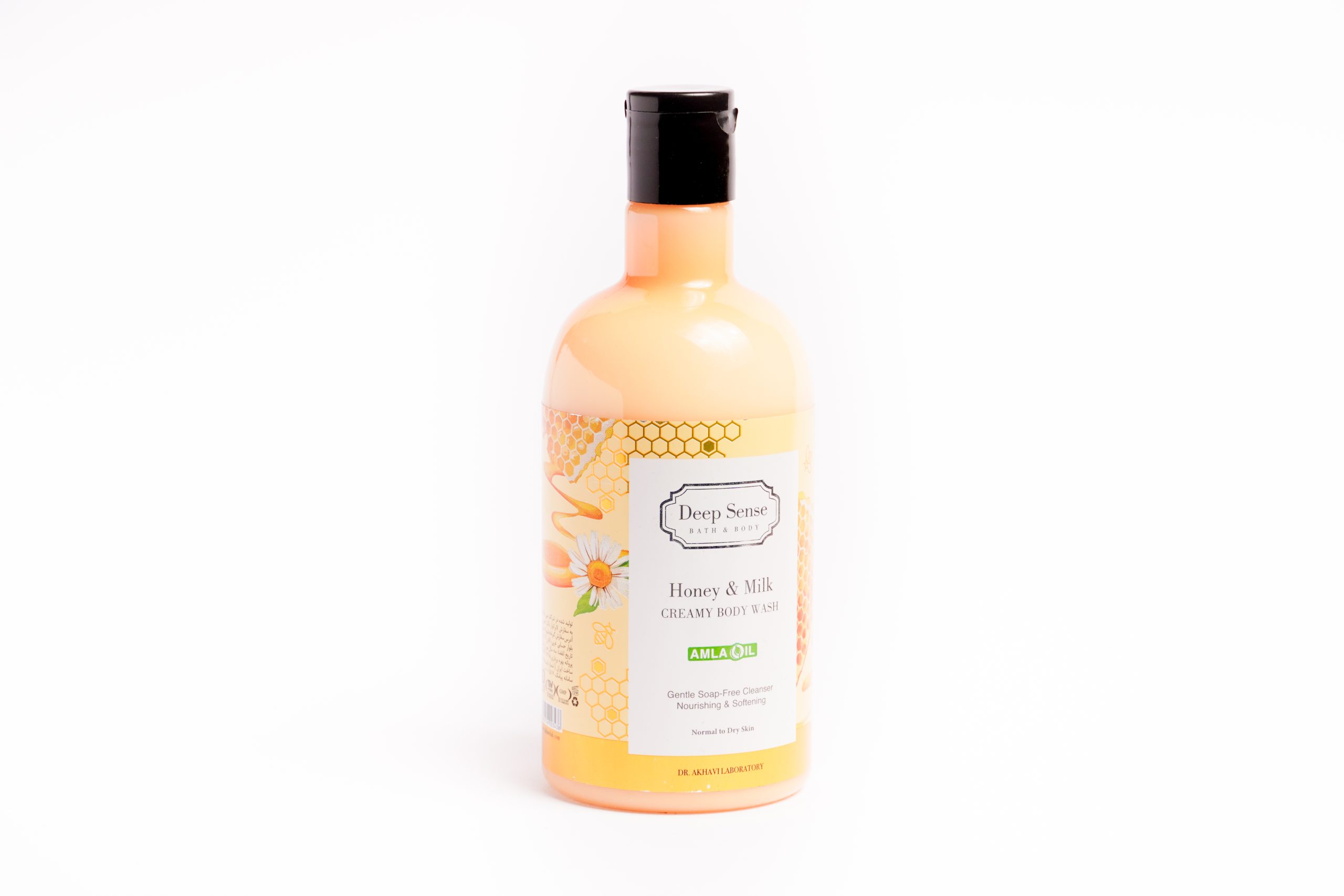 شامپو بدن کرمی شیر و عسل دیپ سنس: شوینده غیرصابونی و مغذی مناسب پوستهای نرمال تا خشک. حاوی پروتئین شیر، هیالورونیک اسید، عصاره عسل و روغن آملا. آبرسانی عمقی، نرم کننده قوی، ترمیم ترکهای پوستی و ضد التهاب.