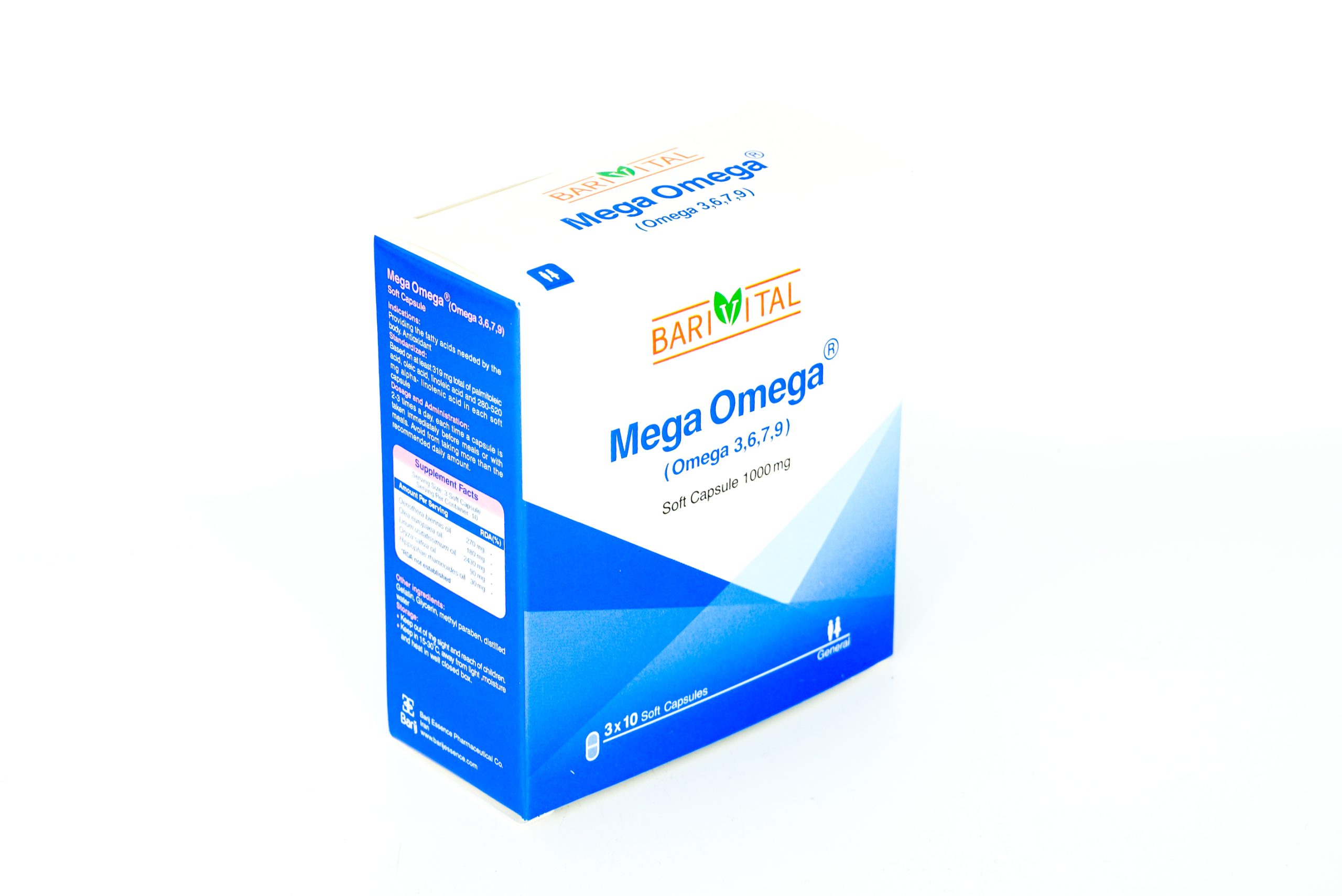 کپسول مگا امگا باریویتال، حاوی امگا 3، 6، 7، 9 از منابع گیاهی و طبیعی، جهت سلامت قلب و عروق، تقویت سیستم عصبی، سلامت پوست و کاهش التهاب.