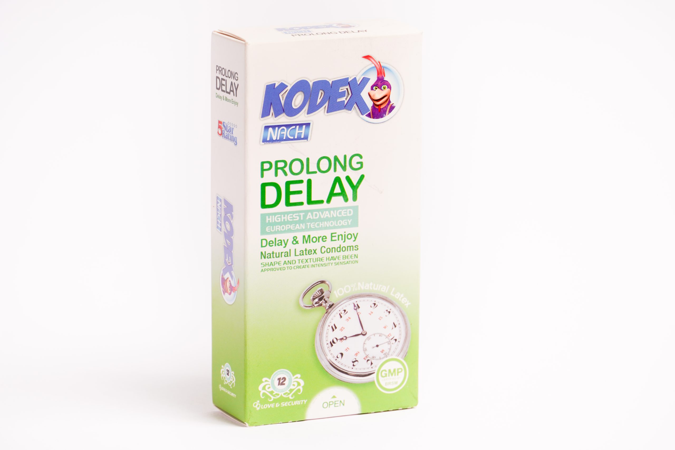 کاندوم تاخیری کدکس پرولانگ دیلی: تاخیر در انزال قوی با ماده موثره بنزوکائین. ساخته شده از لاتکس طبیعی سهلایه و ضد حساسیت با لوبریکانت مرطوب فراوان برای تجربه طولانیتر و ایمنتر.
